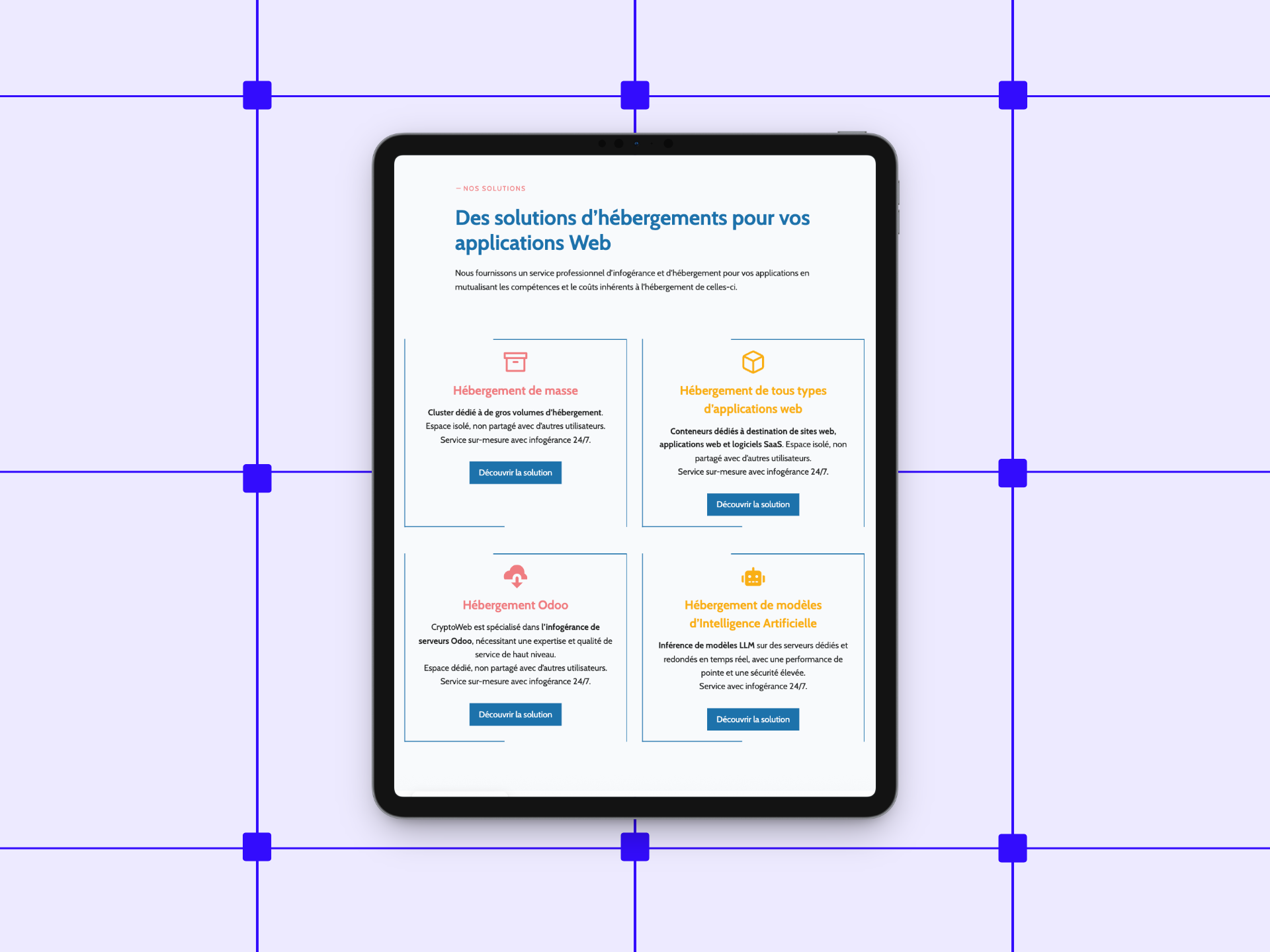 Réalisation du site de CryptoWeb, qui sont spécialisés dans la gestion d’hébergements et serveurs mutualisés.