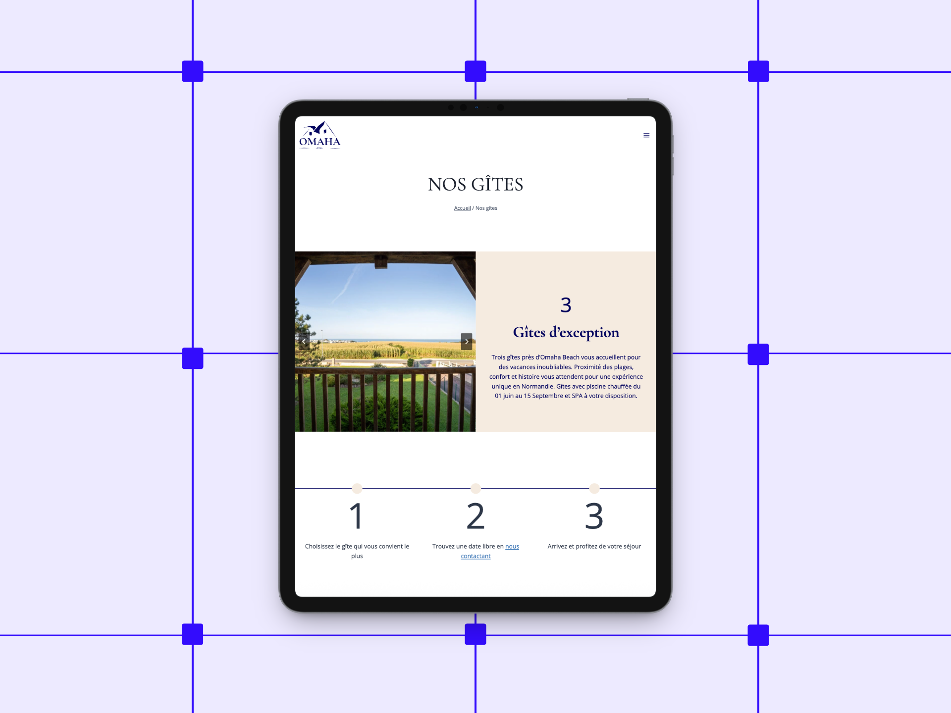 Réalisation du design et du site internet d’Omahagîtes, hébergement près des plages du débarquement. L’objectif est d’augmenter les réservations en direct et de diminuer les commissions des OTAs (Booking, AirBnB, etc.).
